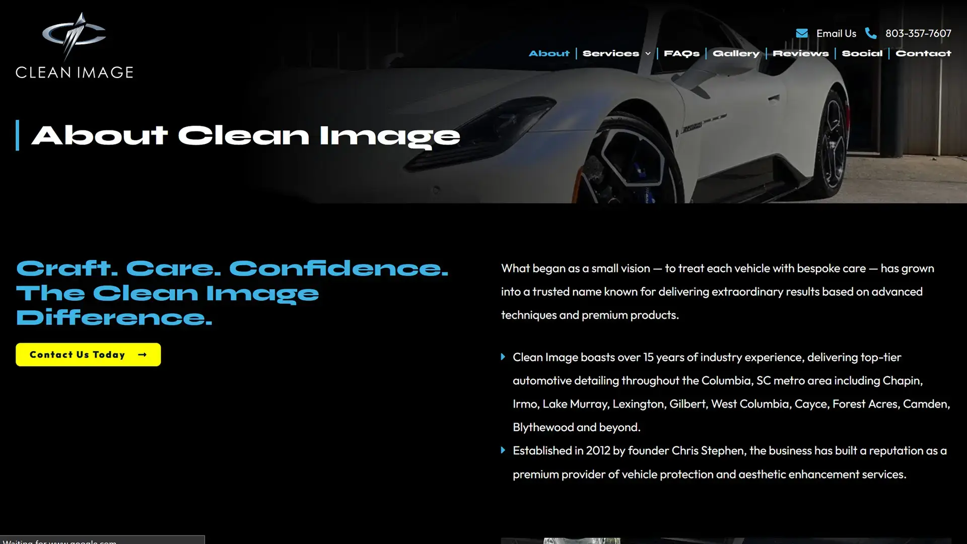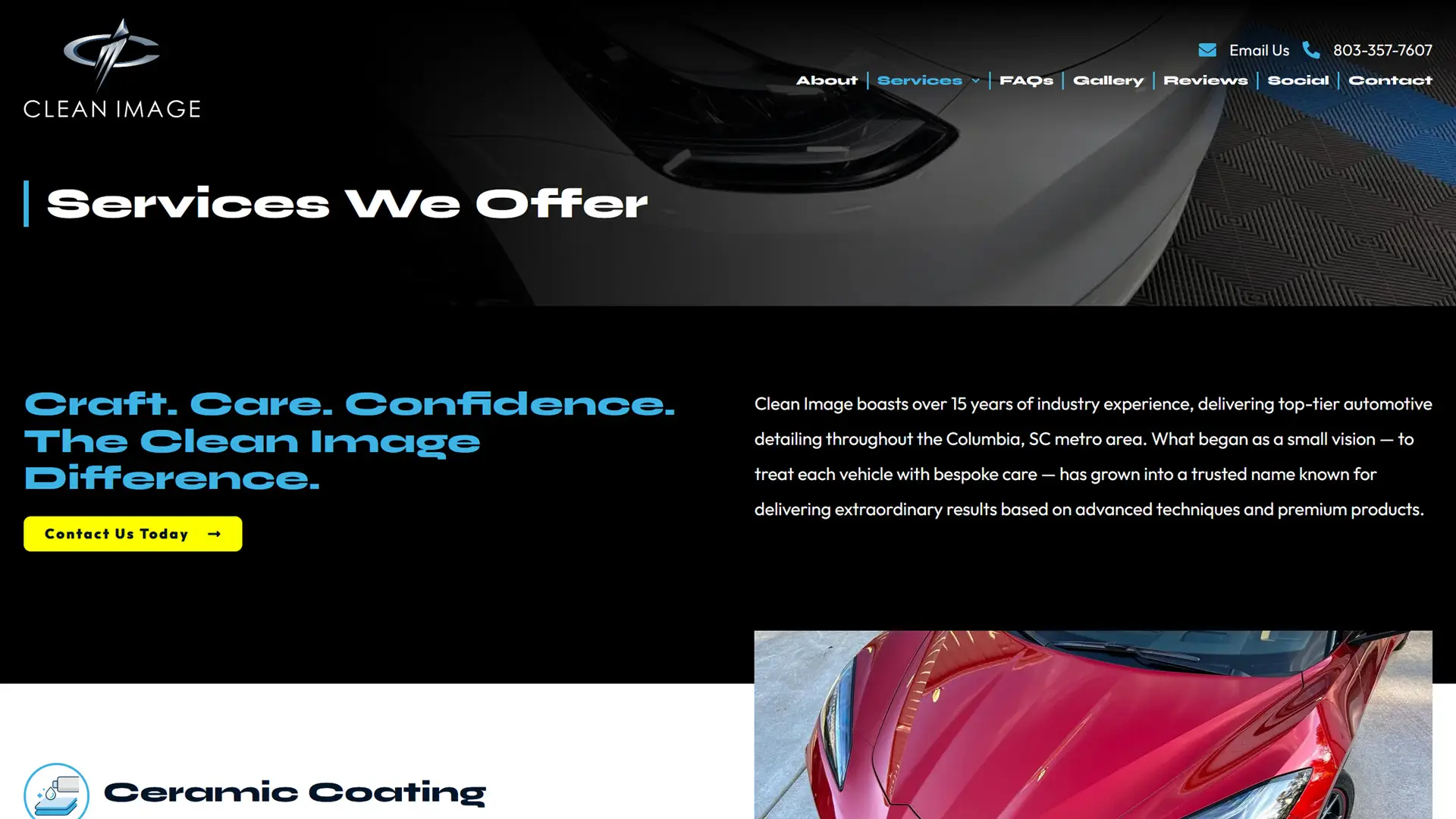 We designed and developed the website for Clean Image, a premier automotive detailing company serving the Columbia, SC metro area.