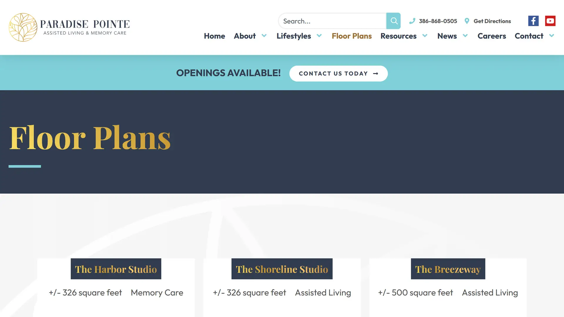 Brandcentric serves all the digital and print design needs for Paradise Pointe, a luxury resort-style assisted living and memory care community in Ormond Beach, FL.